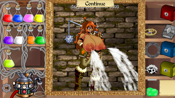 After selling health potions to dungeon-delving adventurers, the dungeon’s dark overlord is none-too-happy with you. Now she is forcing you to sell sabotaged potions, custom brewed for each adventurer to hinder them with bodily transformations.