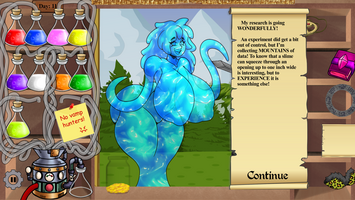 Stuck on the bit where Kat shrinks on Day 28. Name changes to Saber The Fluffy(Saber doesn't appear) but I can't make a potion and nothing interacts with her except the broken device but that just triggers "Huh? wazzat".